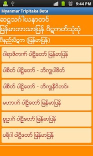 ပိဋကတ္သံုးပံု ျမန္မာဘာသာျပန္ထားတာကို Android Phone ေပၚမွာ ၾကည့္ခ်င္ ဖတ္ခ်င္တဲ႔သူေတြအတြက္ ဒီ App ေလးကို တင္ေပးလိုက္ပါတယ္ဗ်။ ဖုန္းထဲမွာ ပိဋကတ္ သံုးပံုကို ၿမန္မာ ဘာသာၿပန္ ထားေပးေတာ႔ ဘယ္ကိုပဲသြားသြား ဖတ္ရႈဖို႔အဆင္ေျပၿပီေပါ႔ဗ်ာ။ ေအာက္မွာ ပံုေလးေတြနဲ႔ နမူနာျပေပးထား ပါတယ္ဗ်ာ။ အားလံုးပဲ အဆင္ေျပၾကပါေစဗ်ာ........။